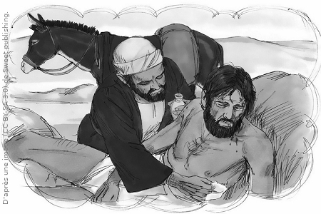 Jésus l'encourage alors, et lui dit : « Tu as bien répondu, fais cela et tu vivras ». Touché certainement par cet encouragement, il lui demande encore « Et qui est mon prochain ? ». C'est alors que Jésus se mit à raconter l'histoire émouvante du bon Samaritain ( Luc 10:25-29, Traduction par Augustin Crampon, édition de 1923 ) :
