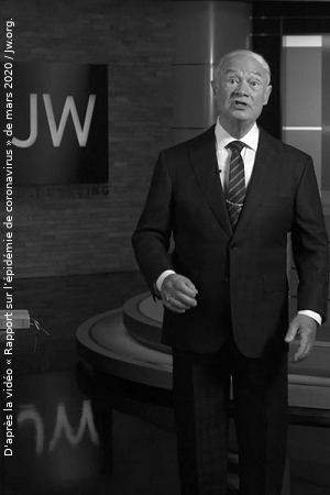 « Certains de nos frères et sœurs ont contracté le Covid-19 ; et malheureusement, à la date du 16 mars, nous comptions six décès... » — Vidéo : Rapport sur l’épidémie de coronavirus, 21 mars 2020, durée 21:54, jw.org.