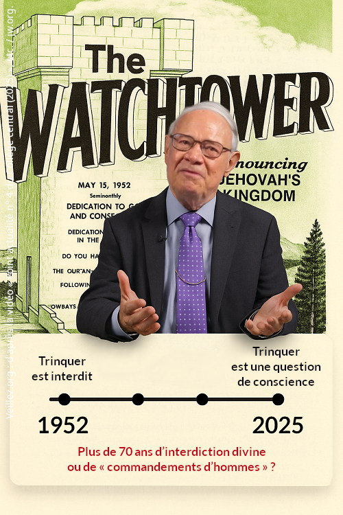 « C’est pourquoi, après avoir examiné ce sujet dans la prière, le Collège central a conclu, qu’il n’y a pas besoin d’établir une règle à propos de lever son verre et de trinquer. » — Vidéo : Point actualité n° 4 du Collège central (2025), 4 juillet 2025, ► 13:03-17 min, jw.org.